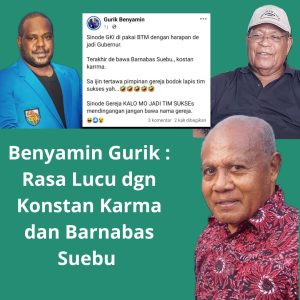 Jayapura,Info Harian terkini,Com – Belakangan ini, Ketua KNPI Papua, Benyamin Gurik, melalui akun Facebook pribadinya, mengungkapkan perasaan lucu terkait tindakan dua tokoh Papua, Barnabas Suebu dan Kostan Karma, yang terlihat mengikuti kampanye akbar pasangan calon nomor urut 1, BTM-YB di Lapangan Trikora beberapa hari lalu. Pernyataan Benyamin Gurik itu menarik perhatian berbagai kalangan, termasuk Marthen Luther Ehaa, Sekretaris DPD Gerakan Rakyat Cinta Indonesia (Gercin) Provinsi Papua.